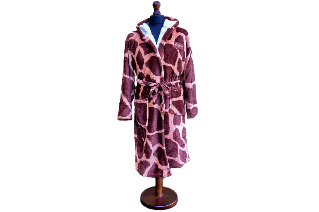 Stay warm and stylish with our sherpa lined giraffe dressing gown. Crafted from soft, insulating sherpa fleece fabric, this dressing gown offers exceptional comfort and warmth, perfect for cooler days and staying cosy in the evenings. Its giraffe pattern adds a playful yet sophisticated touch, making it an ideal choice for fashion and animal lovers and those seeking both functionality and distinctive style. A perfect gift this winter time.
