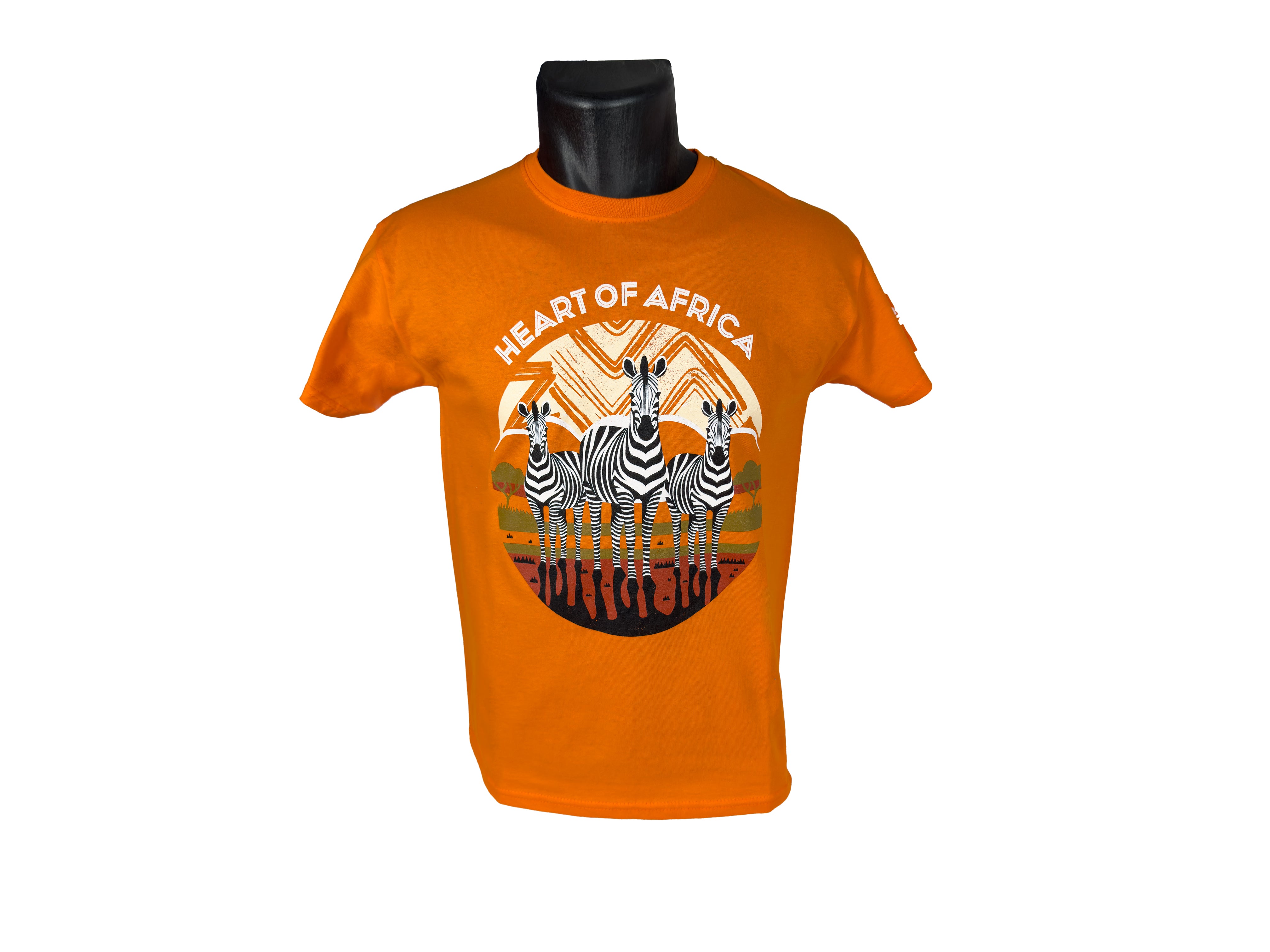 This heart of Africa zebra t-shirt for kids features a charming trio of zebras set against a Savannah backdrop; a design that celebrates wildlife. Crafted with vibrant orange soft, breathable fabric, it ensures comfort for active children while inspiring a love for nature. Perfect for everyday wear, this tee combines style and education, making it an ideal choice for young animal enthusiasts.