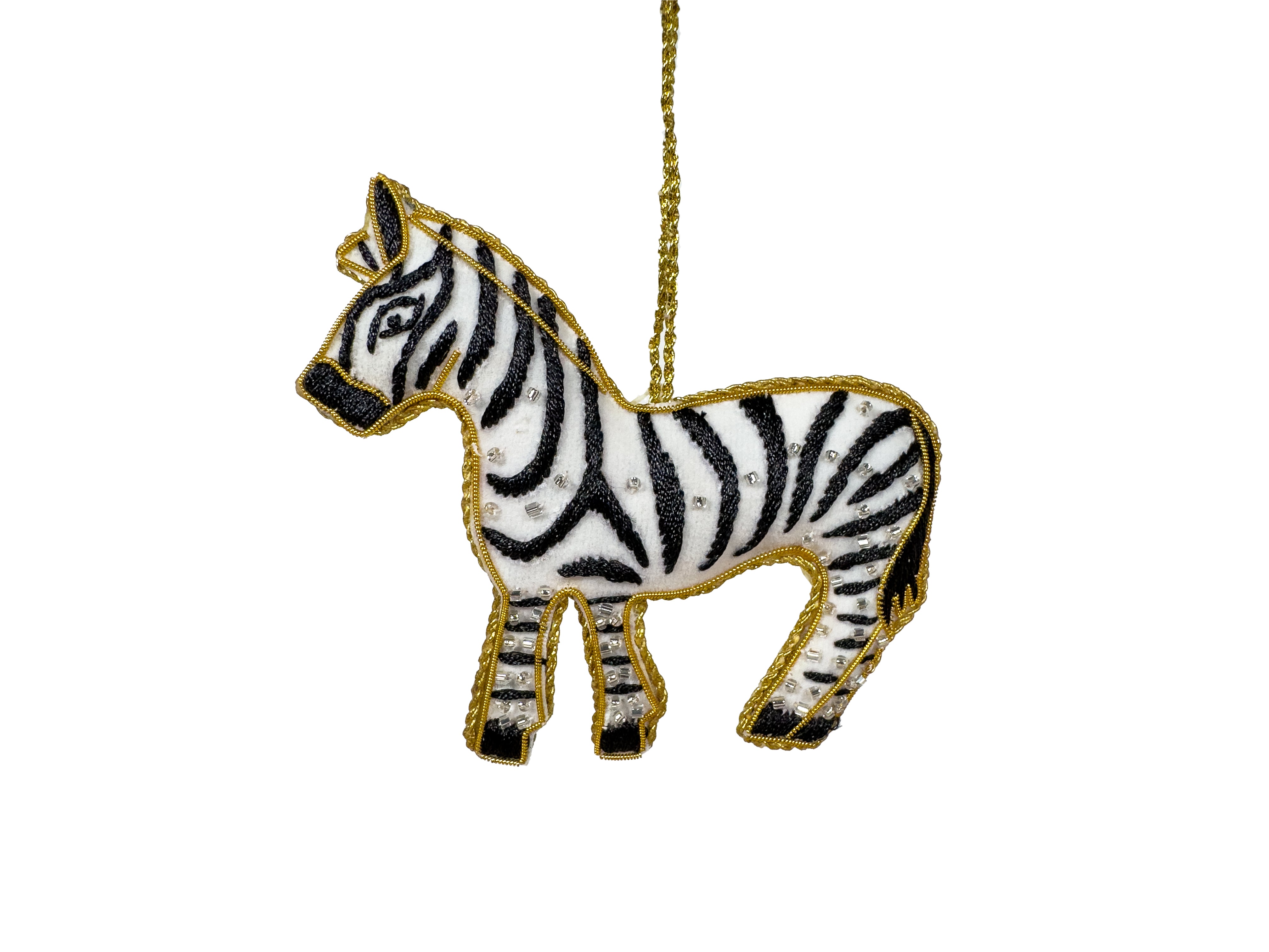 This handcrafted zebra decoration combines intricate beading with carefully stitched fabric, showcasing expert craftsmanship. Each piece is lovingly handcrafted, resulting in a unique decoration showcasing the beauty of the zebra.