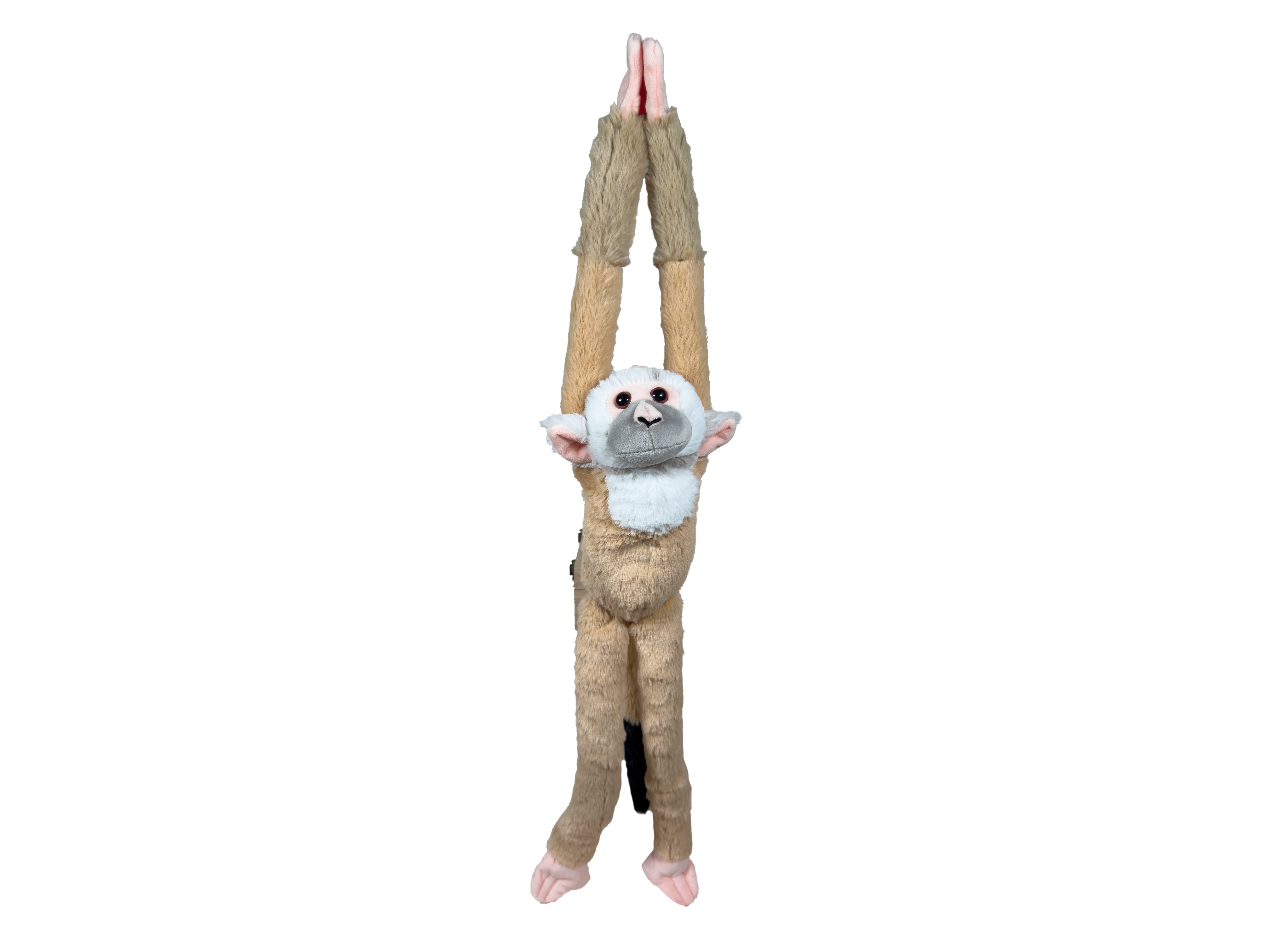 Say hello to your new furry friend! This cheeky 50cm hanging squirrel monkey is ready for adventure, whether dangling or sitting.