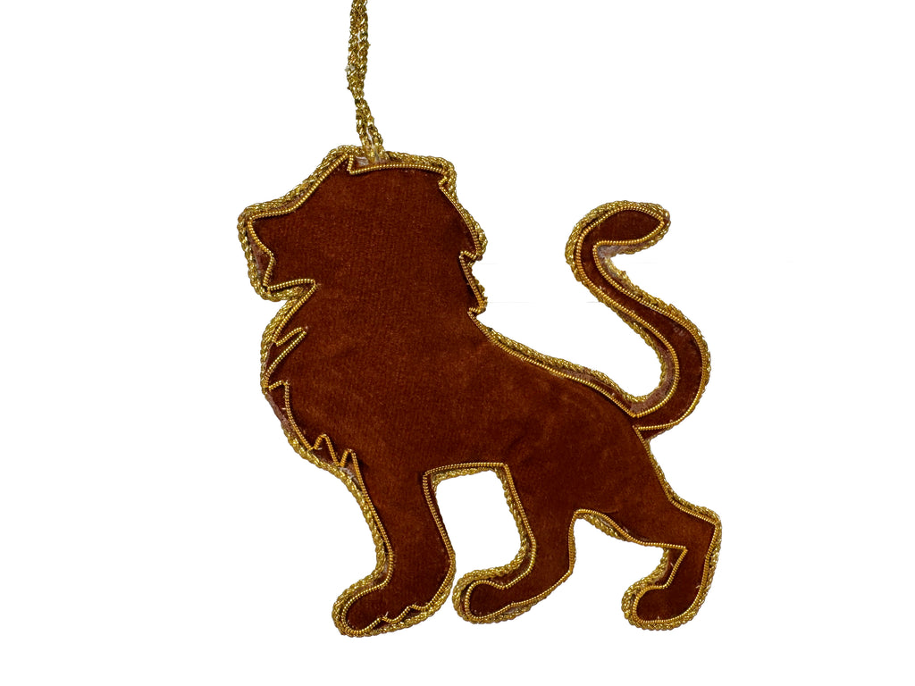 This handcrafted lion decoration combines intricate beading with carefully stitched fabric, showcasing expert craftsmanship. Each piece is lovingly handcrafted, resulting in a unique decoration showcasing the beauty of the lion.