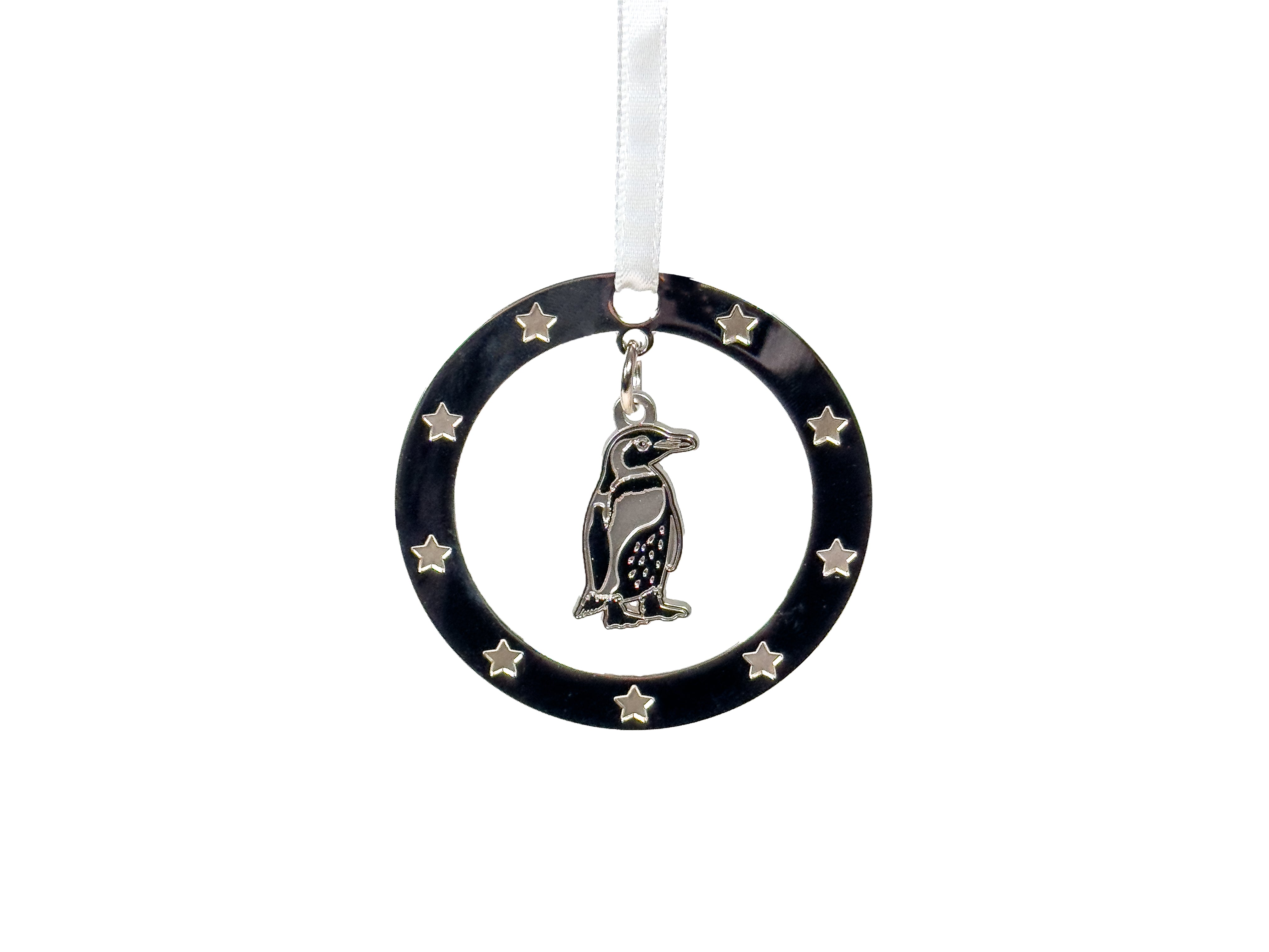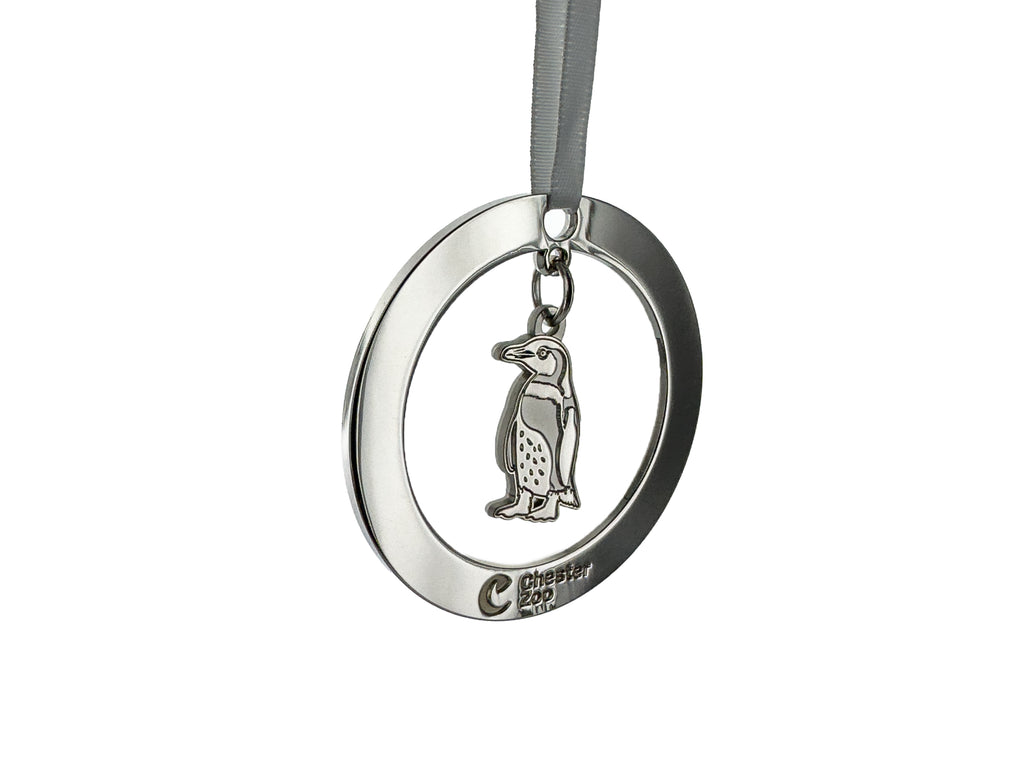 Made using die-stamped metal with a polished finish and trimmed with a length of beautiful silver coloured ribbon, our stunning silver metal decoration encircles a shining silver penguin charm, making it an elegant addition to any space while celebrating the magnificent penguin. A perfect gift for Christmas enthusiasts and animal lovers alike, it offers a subtle yet sophisticated way to support Chester Zoo.